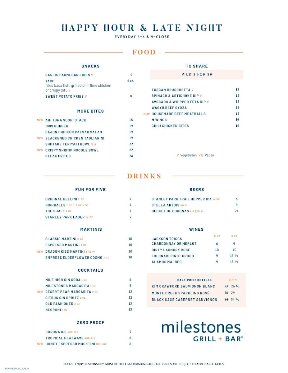 Milestones - BC V7T 1G2 Menu